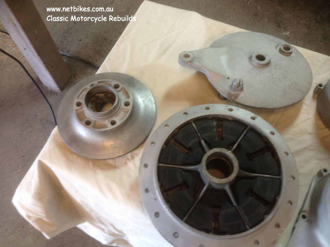 Everything used will be renewed, repainted, rechromed etc. It will be for sale when complete. Parts used in the bike will range from 1969 to 1972 and some parts not originally used on T350's. If you have a interest in purchasing this bike please call me on 0422 819 200. Bike is at Mt.Gravatt East Brisbane Australia. =================== I'll start with the engine, it is from a 71 model, stripped bare, cases blasted, the botton case was painted in epoxy silver to make for easy cleaning.