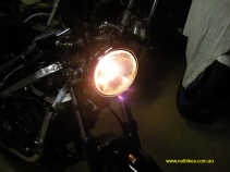 Just a couple of close up shots of the front guard fitted, the guard is from a Kawasaki KR250 which I have trimmed a little. Check how sweet the front disc area is looking:-), I still need to locate or buy new, the calliper covers, also need to locate amber lenses for the rear indicators or make them myself. I have painted the chambers with VHT 530c satin black. Moving onto the headlight and fairing next, a new round headlight to go with the old school fairing i will be was fitted..