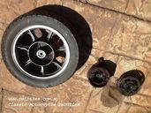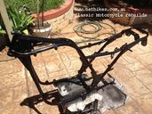 | Moving onto the wheels now, front wheel tomorrow, not decided what colour yet for the rims. The sprocket holder bearing will be replaced with a new one although this one is perfectly fine also. I have also readied the engine mount plates, battery box and other assorted frame fittings, they are hanging up on the copper hot water pipe under the house waiting to return to their rightful place on the bike. I'll be sending the cycle threads away tomorrow for zinc plating, so it will be a week or so before i can assemble much, all the new paint should be well hard by then. Till next update then. |