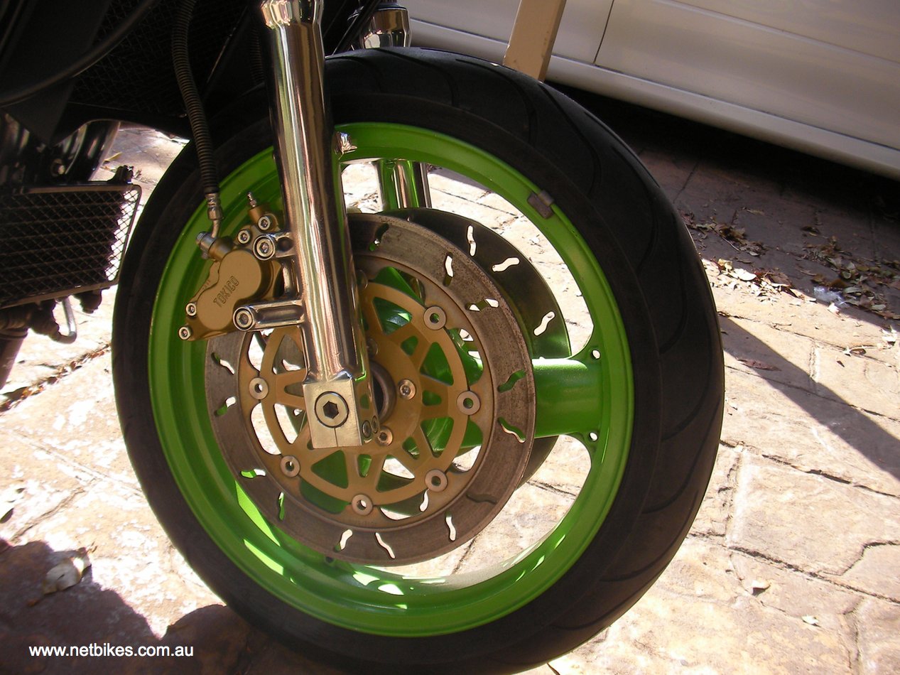 Unfortunately the paint work is going to be a hold up, I am still looking for a good front fairing, no luck yet. Below are a few pictures of the restored callipers and zinc plating of bolts done with a Jane Kit. Remember it is all in the preparation, all pieces were cleaned to remove any oils and then put over the wire wheel and buffed up to the max so they were shiny before they went anywhere near the plating kit. |
