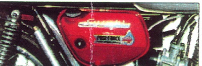 Two separate instruments, a speedometer and a tachometer, are mounted fairly high, so that they easily are read. Both dials are large, and the speedometer, on the left, also incorporates an odometer. Along the lower part of the tachometer are mounted three warning lightsone indicating neutral position in the gearbox, another informing that headlamp high beam is in use, and the third an indicator for flashing direction lights. Because flashers were not fitted to the test bike, the light remained inoperative. Not only are the dials effectively mounted. but they remain totally unaffected by vibration, and the needles are as steady as a marksmans aim.